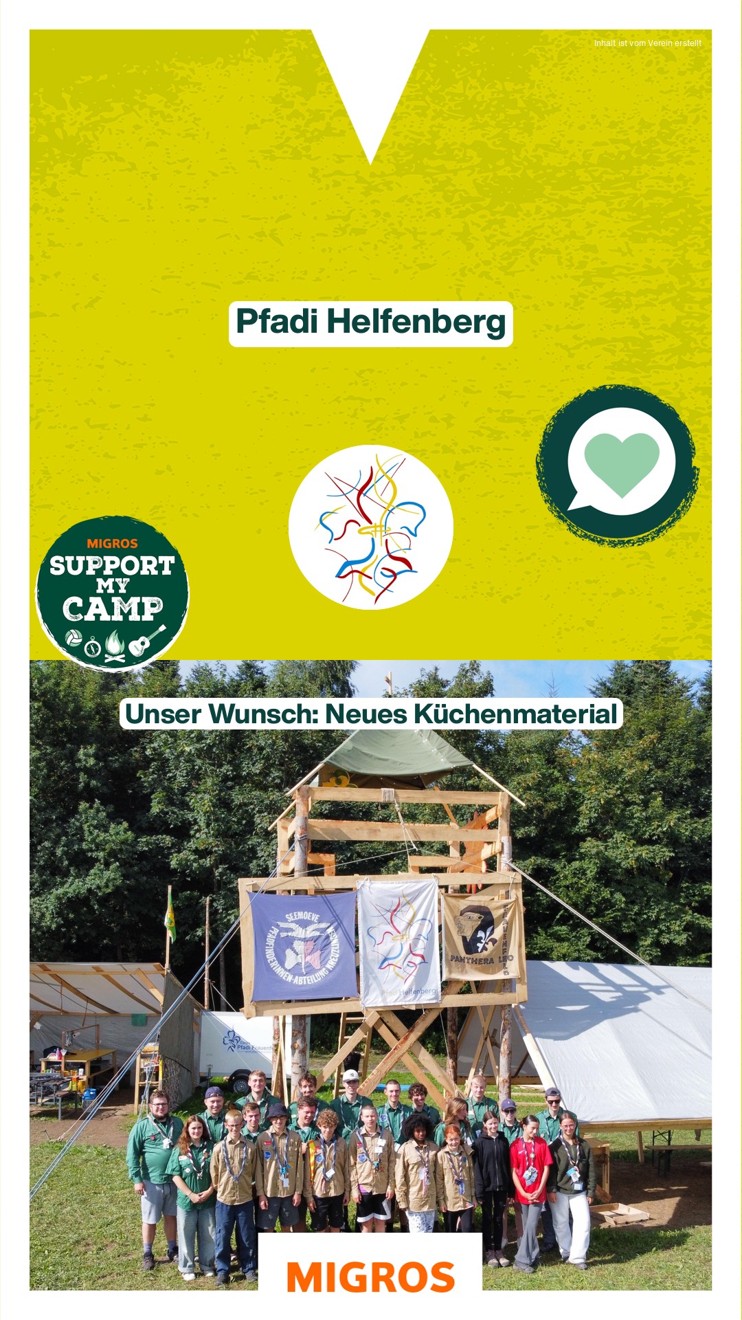 Wir möchten euch darauf aufmerksam machen, dass wir dieses Jahr bei „Support my Camp“ von Migros mitmachen.